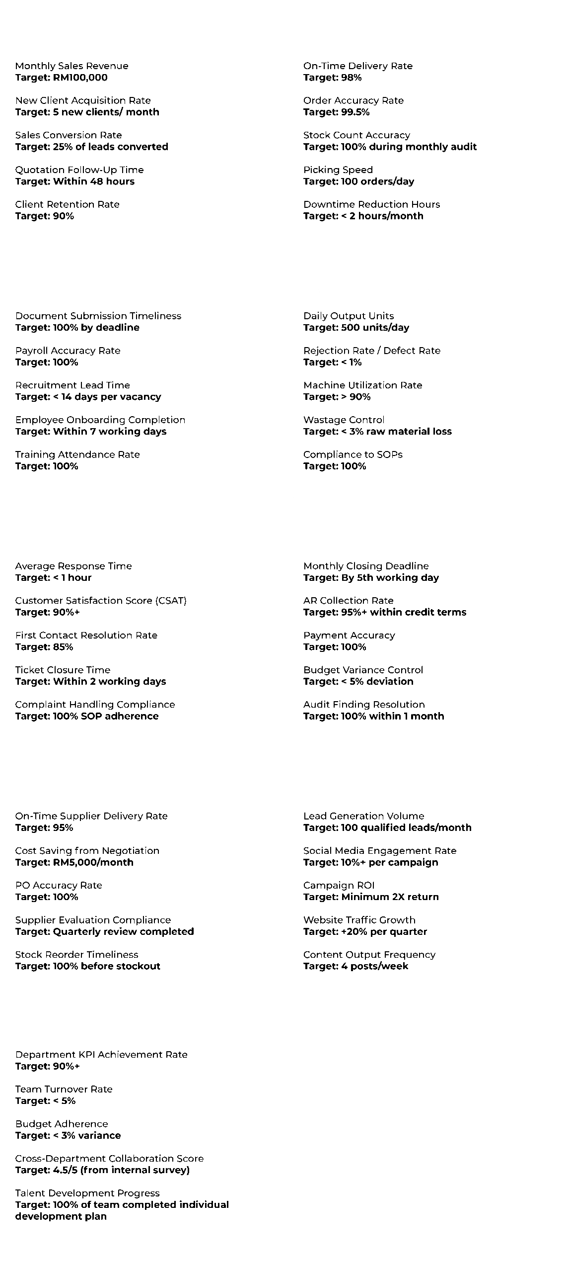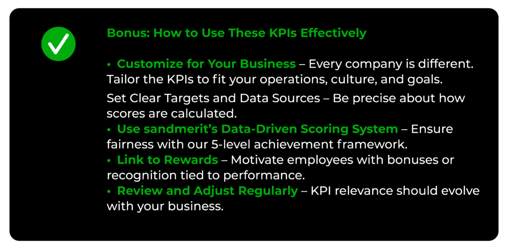 examples of employee KPIs by department Don’t guess your way through performance management. sandmerit helps you define the right KPIs, align your teams, and automate the entire process. book a FREE consultation learn more about sandmerit KPI 12 program contact us for a consultation Fill out the form below, and our local representative will be in touch with you within 24 hours ∙ Malaysia ∙ Singapore ∙ Thailand ∙ Philippines ∙ Vietnam ∙ Cambodia ∙ Indonesia Please enable JavaScript in your browser to complete this form.Name *Designation *Company Name *Mobile *Email Address *Text MessageSend Message